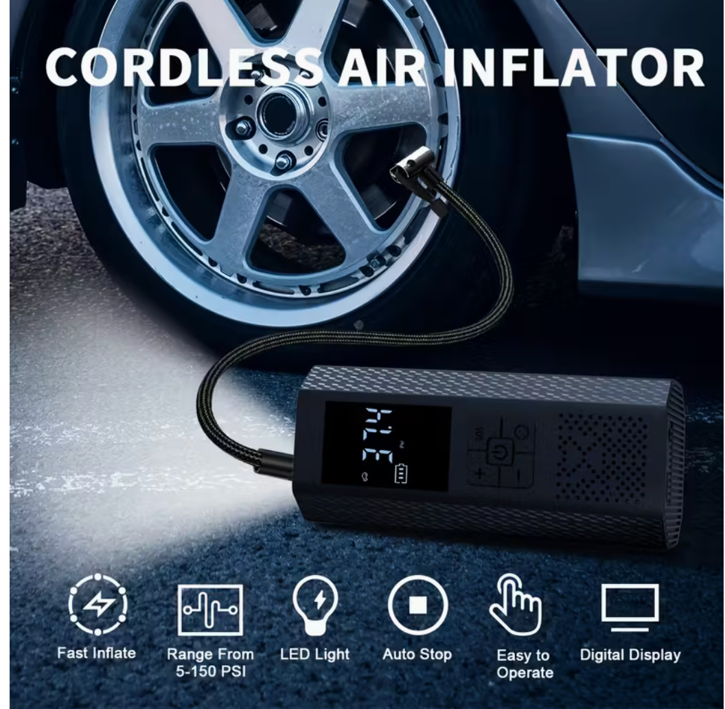Geef jezelf gemoedsrust onderweg met onze draagbare digitale bandenpomp. Deze compacte maar extreem krachtige compressor is ideaal voor auto’s, motors, scooters, fietsen, sportballen en zelfs opblaasartikelen. Met één druk op de knop pomp je elk object razendsnel op.